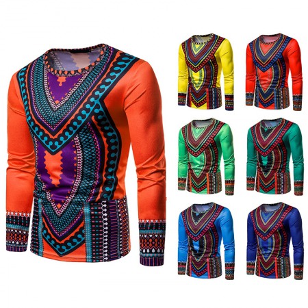 Men's 3D Clan Style Multicolor Round Neck Long Sleeve Printed T-Shirt