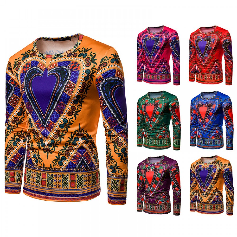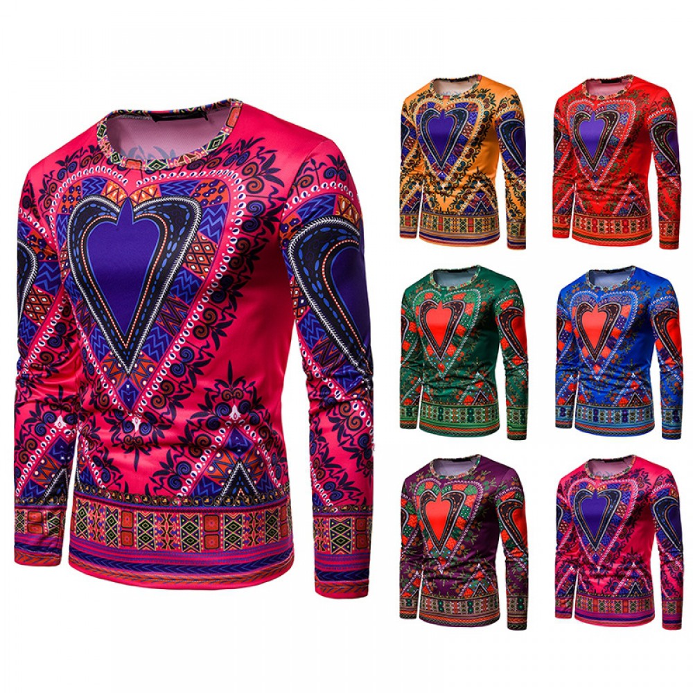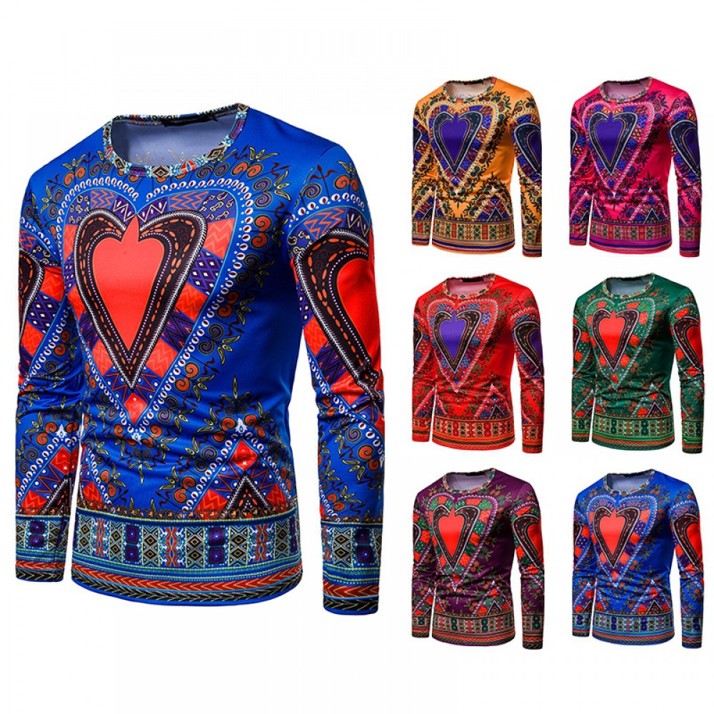 Men's 3D Love Picture Round Neck Long Sleeve T-Shirt