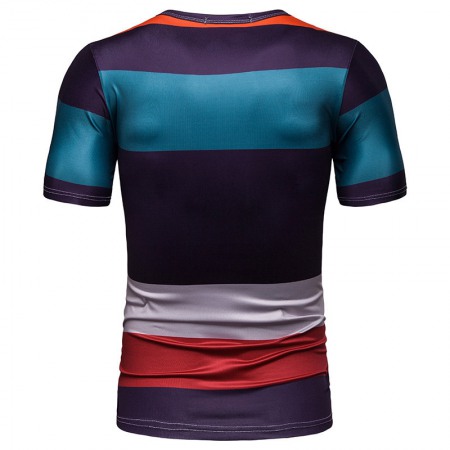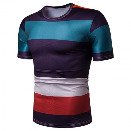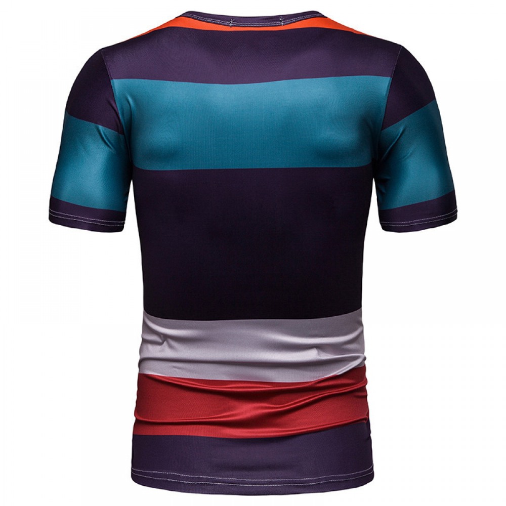 New Summer Men's Short-Sleeved T-Shirt Contrast Striped Slim Casual T-Shirt