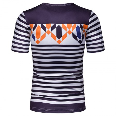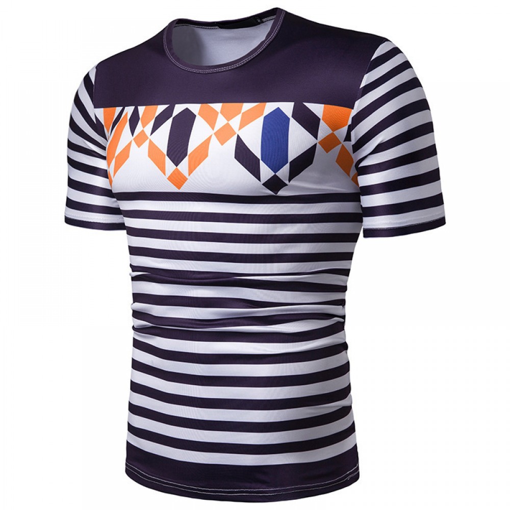 New Summer Men's Short-Sleeved T-Shirt Contrast Striped Slim Casual T-Shirt