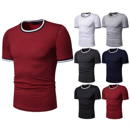 New Summer Men's Short-Sleeved T-Shirt Contrast Striped Slim Casual T-Shirt
