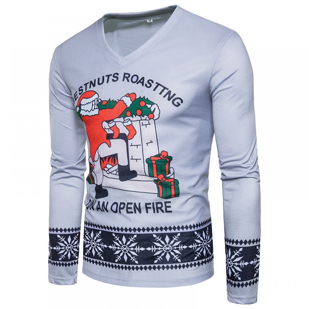 Hot Style Men's Christmas Long-Sleeved V-Neck T-Shirt