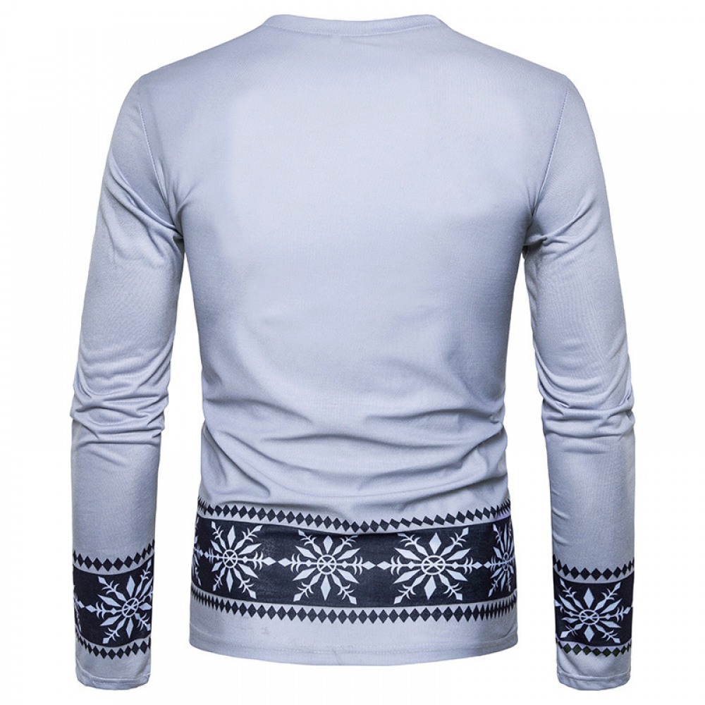 New 3D Personality Printing Fashion Men's Christmas Elk Pattern Long-Sleeved T-Shirt