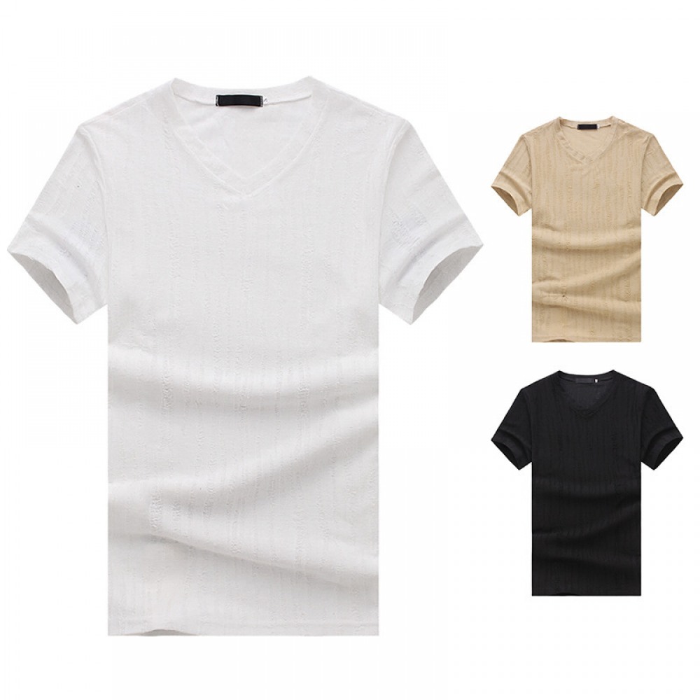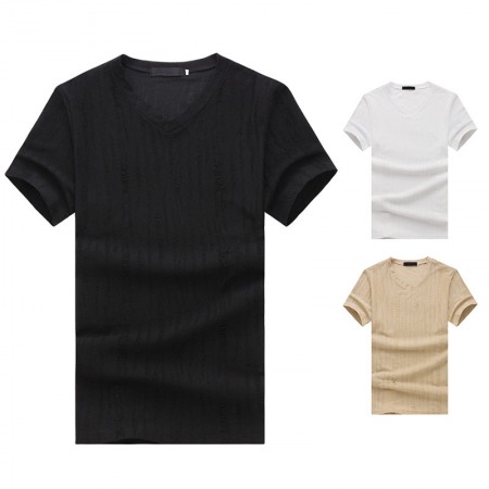 Men's Fashion Style Double Zipper Long Round Neck T-Shirt Multicolor Plus Size Short-Sleeved T-Shirt