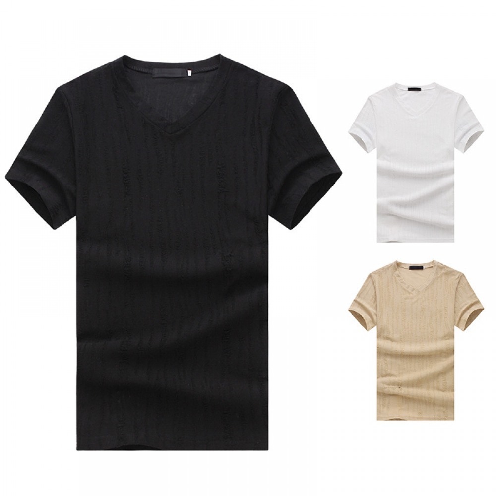 Flat Summer New Men's Round Neck Short-Sleeved High Street Arc Hem Solid Color Leather T-Shirt