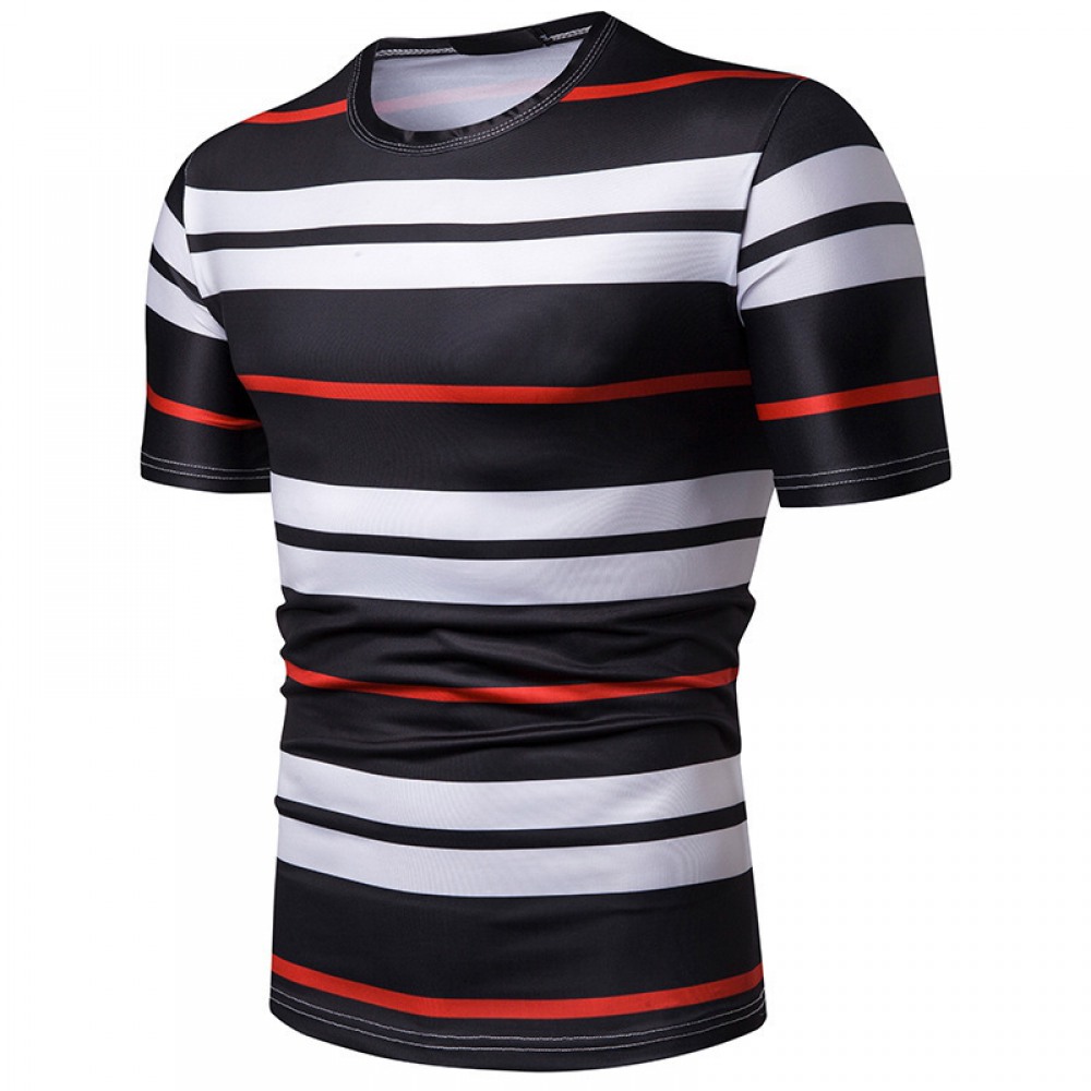 New Summer Men's Short-Sleeved T-Shirt Contrast Striped Slim Casual T-Shirt